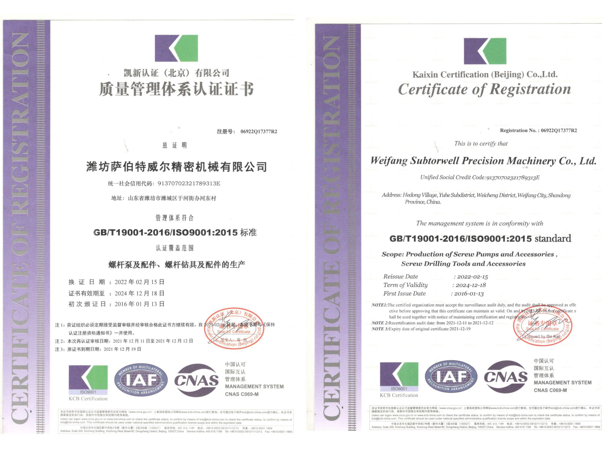 质量管理体系认证证书